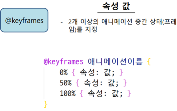 - animation: 이름 지속시간 [타이밍함수 대기시간 ... 재생정지 등];