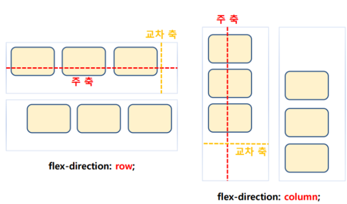 | flex-direction | flex itemss 의 주 축을 설정 |