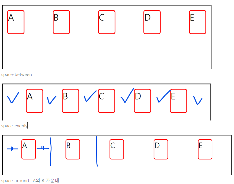 | space-evenly | 모든 여백이 균등하게 정렬 |