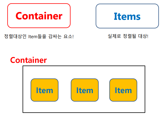 | flex-start | items를 시작점부터 정렬 (기본값) |