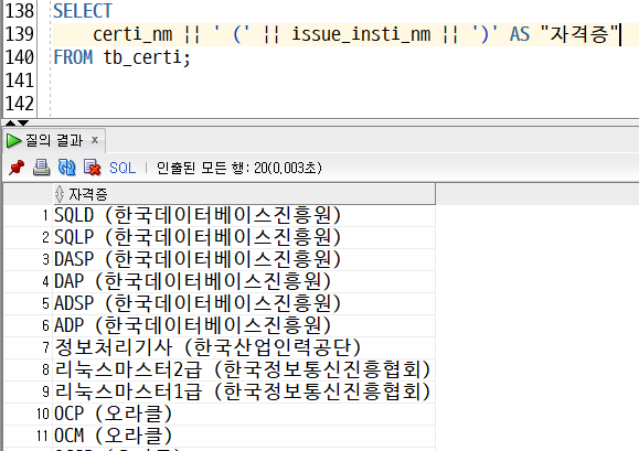 - SELECT 컬럼 순서대로 조회 결과 출력